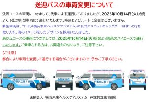 送迎バス 車両変更のお知らせ(2025年10月14日~)
