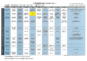月~ 外来医師担当表(PDF)はこちら(2025年11月29日更新)